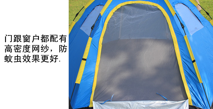 Blue 5-8 people (one door, five Windows) | Blue 5-8 people (double doors and four Windows) | Blue 5-8 person single door double rain proof | Blue 5-8 people double door double rain protection | Rainproof cloth cover | Hexagonal aluminum film mat | Camouflage 5-8 people (two doors and four Windows)